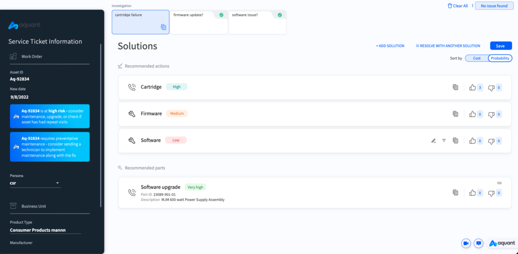 Identifying quickly high risk assets is key to anticipate escalations and define next steps to improve customer satisfaction.