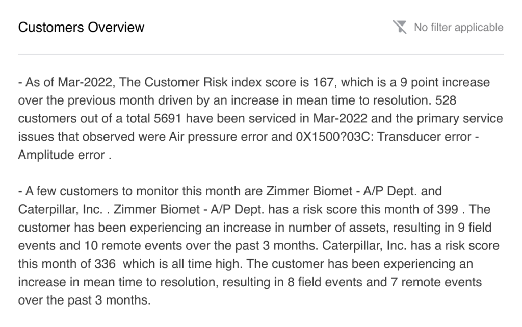 Filtering the dashboard, by customer or even workforce to mention only a few options, is often the first step taken after opening Service Insights.